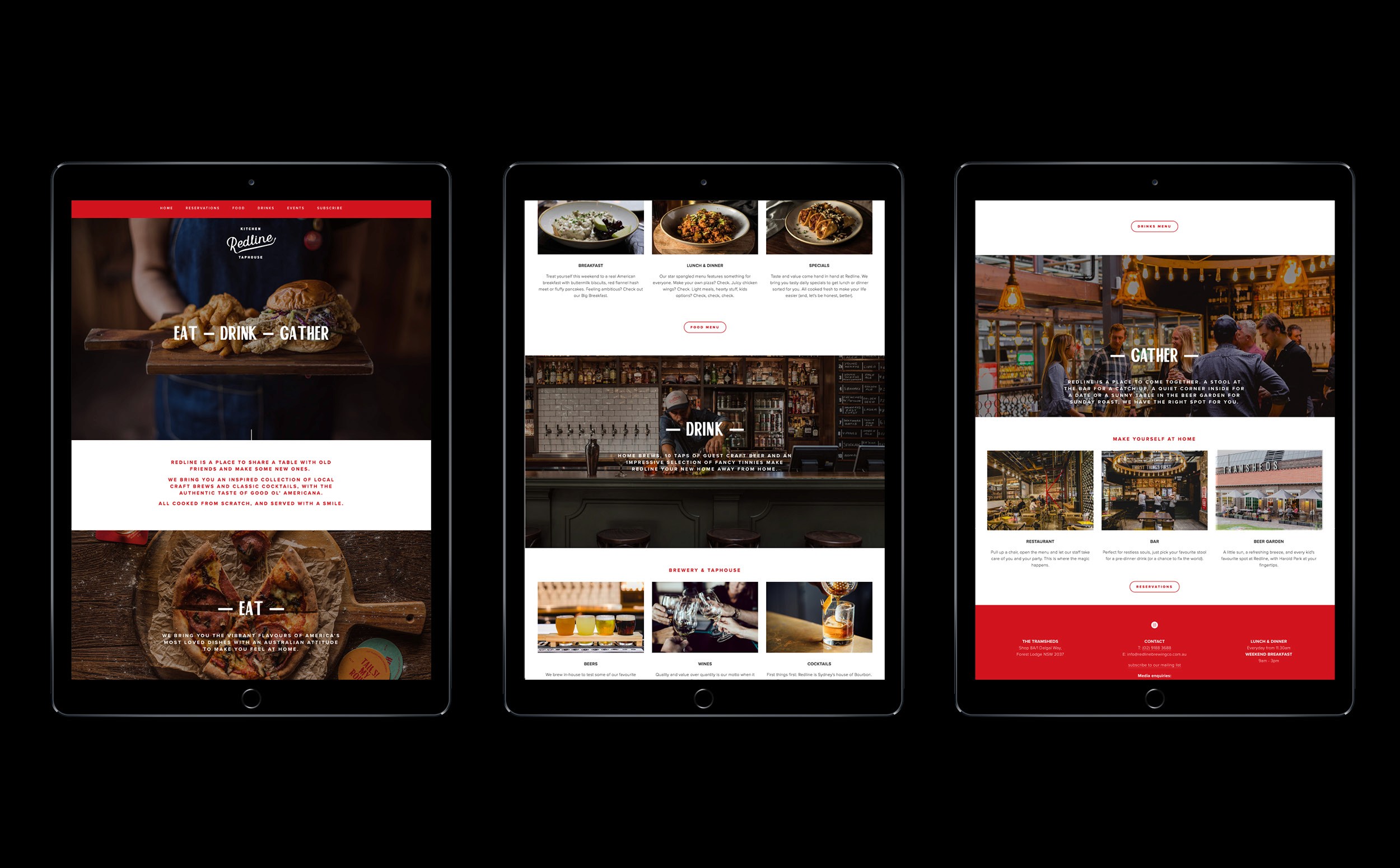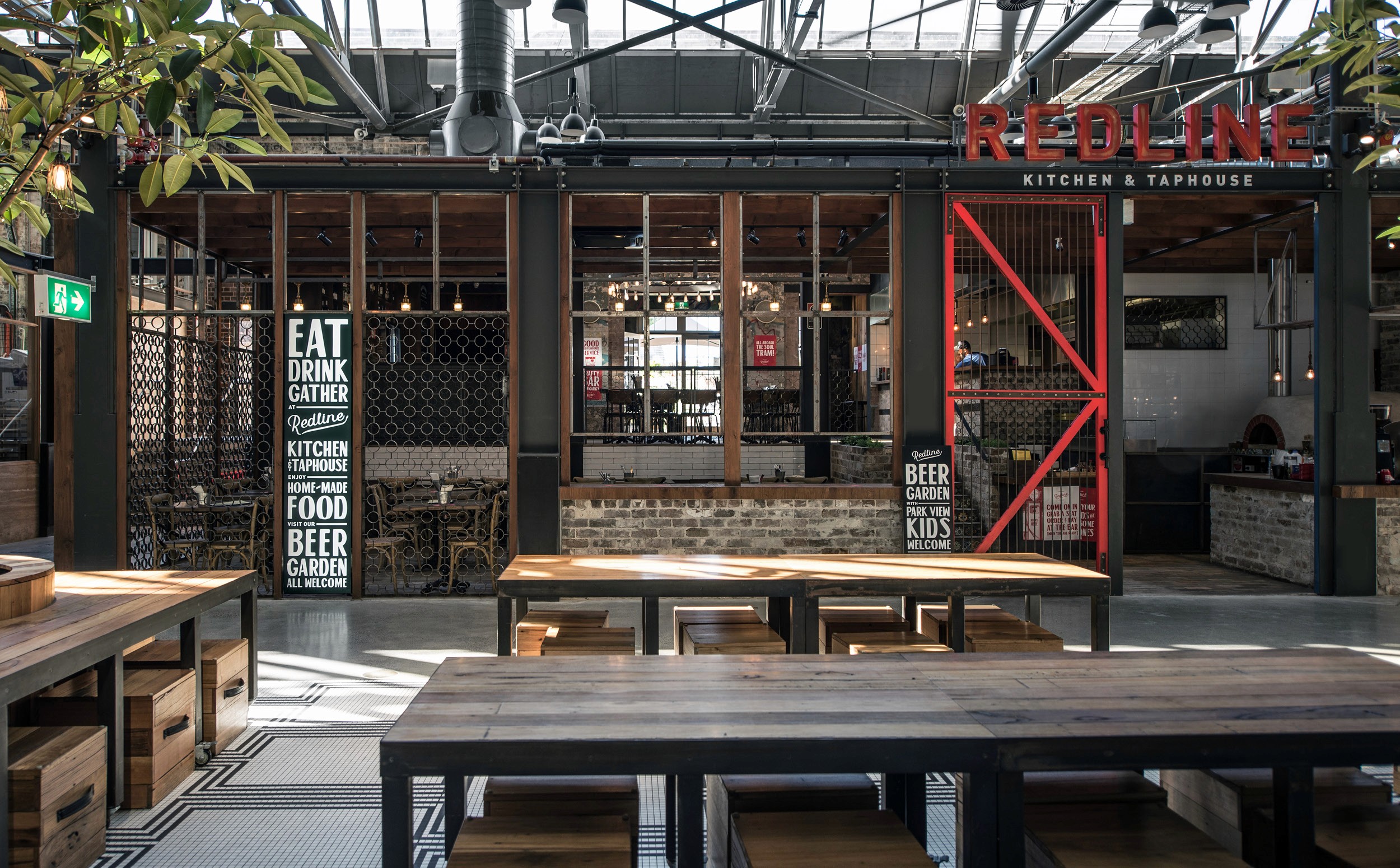 Redline is an American-inspired taphouse and restaurant located in The Tramsheds, Sydney. A place to gather with old friends and meet new ones, it brings together an inspired selection of craft brews and classic cocktails with the authentic flavors of Americana. The name and branding pay homage to the redline trams that once ran through the area, uniting the community—just as the venue does today.